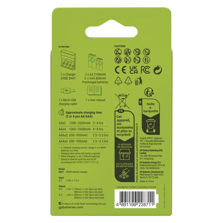 Nabíječka baterií GP Recharge B441 + 2× AA Recharge 2100 mAh + 2× AAA Recharge 800 mAh