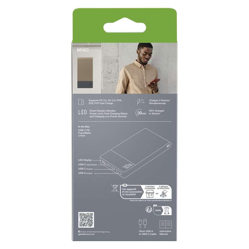Powerbanka GP ze série M2+ v decentním béžovém odstínu nabízí výkon a styl v jednom těle. Funkce rychlého nabíjení, přehledný displej, dostatečná kapacita a tři USB porty z ní činí nepostradatelného pomocníka.