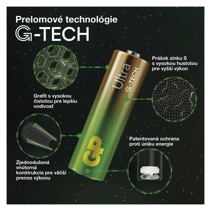 S týmto novým radom batérií od spoločnosti GP budete mať dostatok energie pre vaše najnáročnejšie úlohy a činnosti. Či už ste doma, v práci alebo na cestách, alkalické batérie ULTRA s technológiou G-TECH sú vaším spoľahlivým partnerom, ktorý vám dodá potrebnú energiu.