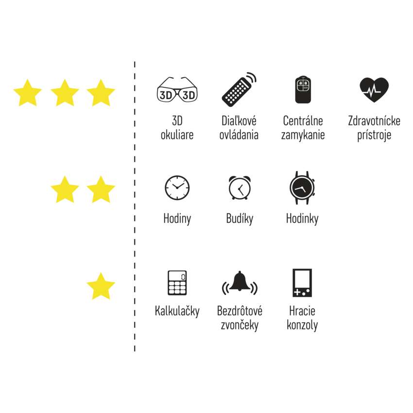 Sú nevyhnutnou súčasťou všetkých moderných domácností, ktoré sa nebránia novým technológiám. Zabezpečujú bezpečnosť vašej rodiny v bezpečnostných systémoch, senzoroch alebo detektoroch dymu, ale uľahčujú aj každodenný život v diaľkovom ovládaní (pre vaše auto, garážové dvere alebo elektrické rolety) a elektrických zámkoch dverí. S Ich používanie vám ušetrí veľa krokov navyše, zabuchnutých kľúčov vo vnútri domu a odcudzených predmetov. Jedna sada batérií bude napájať vašu elektroniku mnoho rokov.